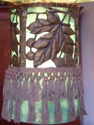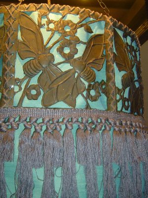 Hanglamp Art Nouveau Frankrijk; circa 1900 ontwerper onbekend messing en stof H 100 Ø 40 cm details € 725,- |