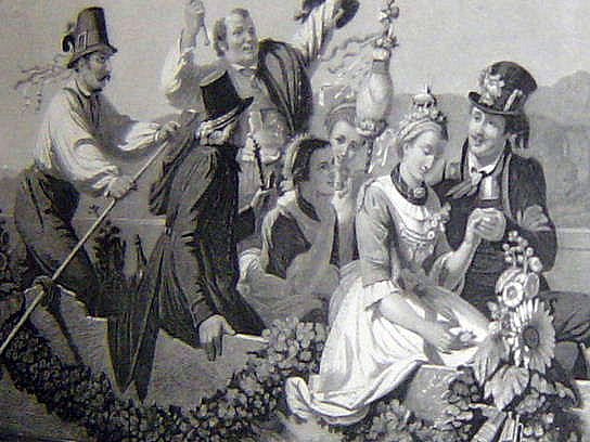 Steel engraving 'Einhalung der braut' Germany; around 1850 artist A. Fleischmann 37 x 60 cm frame 62 x 77 cm