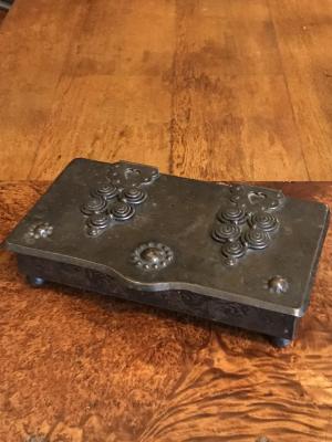 box Arts & Crafts Germany; around 1900 Goberg (Hugo Berger) not signed wrought iron outside dimensions; height 5,5cm, wide 16,5cm, deep 10cm.. € 120,- |