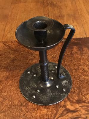 Candlestick Arts & Crafts Germany; around 1910 Goberg (Hugo Berger) not signed wrought iron 17 cm H € 40,- |