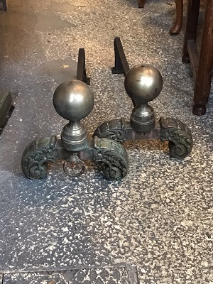 | Grote Vuurbokken circa 1880 sneedijzer met messing H30, B29, D65 cm € 150,- |