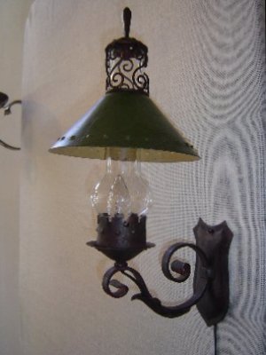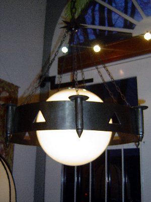 Arts & Crafts; circa 1900 ontwerper onbekend smeedijzer ุ 70 cm in combinatie met een Raak lamp circa 1970 750,- |
